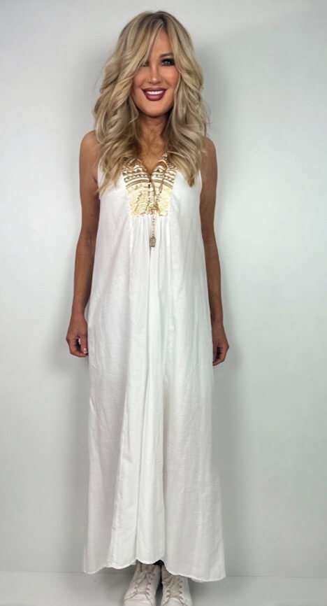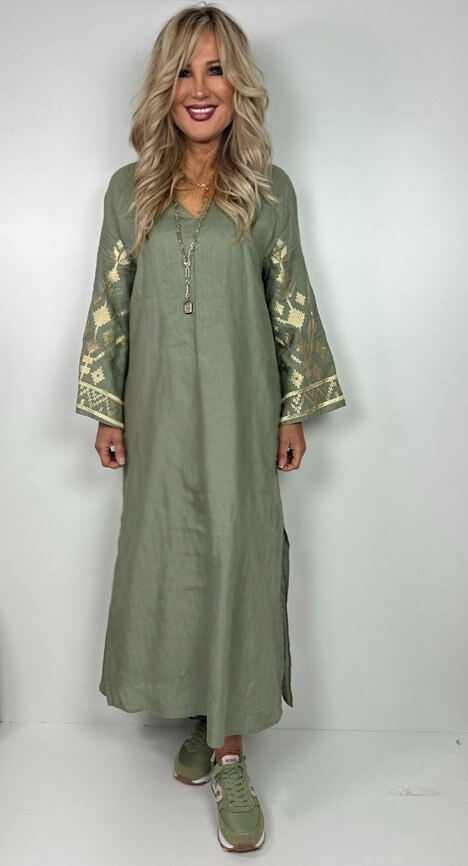 GREEK ARCHAIC KORI dress long linen sage-gold