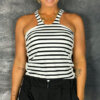 Sportives, schmal geschnittenes, gestreiftes Top in schwarz von 10Days, mit schöner Träger/Ausschnitt-Variante mit seitlichem Labeldruck „10 DAYS“ in ecru-schwarz.