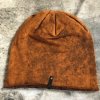 Cognacfarbene Mütze, meliert mit offenen Kanten und dem Be Famous Label seitlich.