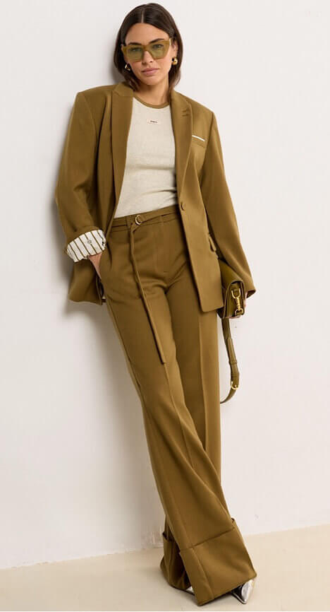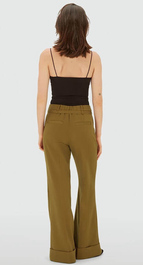 Die JOSH V Korien Damenhose in der Farbe Olive Green bietet endlose Kombinationsmöglichkeiten. Trage die ausgestellte Hose mit dem passenden Kanan Blazer für einen kompletten Damenanzug oder mit einem schönen olivgrünen Pullover. Die dunkelgrüne Hose mit flared Bein ist aus einer komfortablen Qualität mit recyceltem Polyester gefertigt. Die Hose ist außerdem verlängerbar und mit einem Gürtel mit gebrandetem Detail versehen.