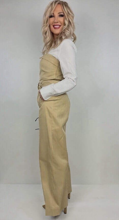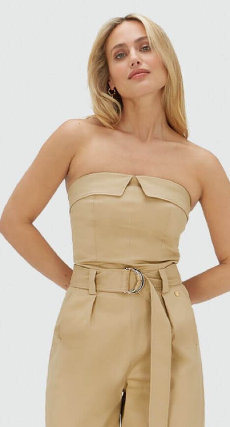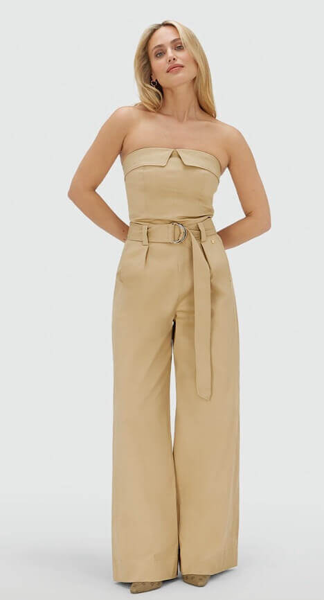 Der JOSH V Myra Damen-Jumpsuit in der Farbe Light Camel ist ein trägerloser Jumpsuit mit einem figurbetonten Oberteil und weit geschnittenen Beinen. Der Jumpsuit besteht aus Baumwolle aus der Better Cotton Initiative (BCI™) und Elasthan für zusätzlichen Komfort. Das Design verfügt über Eingrifftaschen vorne, Paspeltaschen hinten, einen Reißverschluss in der Seitennaht sowie einen passenden Gürtel. Tragen Sie den Jumpsuit in den kälteren Monaten mit einer Bluse oder in den wärmeren Monaten trägerlos in Kombination mit Sneakern oder eleganten High Heels.