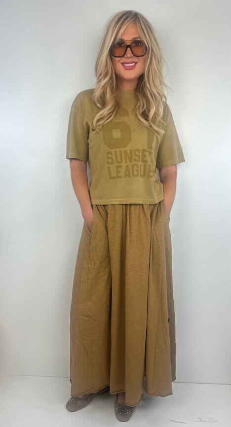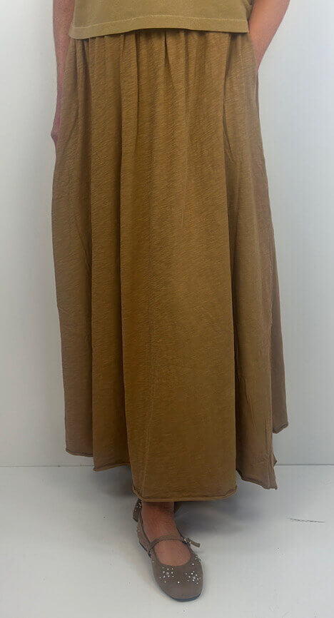 Langer Rock von Penn & Ink, im Farbton Butternut, im Jerseystyle, mit flexiblem Bund und Eingrifftaschen.