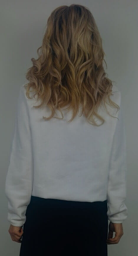 Kuscheliger Sweater von Penn & Ink, im Farbton White, mit dunkelblauem Flock CALIFORNIA 61.