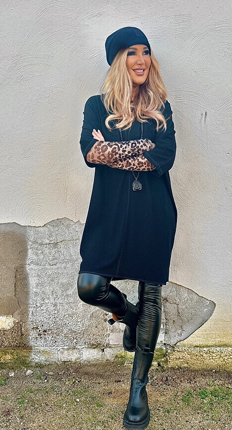 Leicht transparentes Longsleeve, im Leo Print, in den Farbtönen Beige, Braun schwarz.