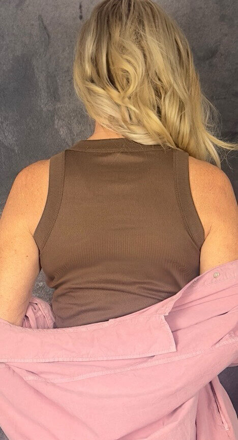 Elastisches, angenehm zu tragendes Ripp Top, im Farbton Brown, mit eng anliegendem Halsausschnitt.