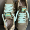 Sneaker von Wushu Ruyi, Modell „Master M561 M „, in oliven Farbtönen, mit mintfarbenem Schnürsenkel, und extra Schnürsenkel im Farbton Olive Hell.